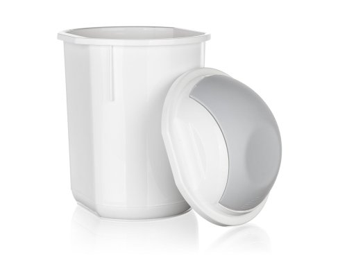 Kôš odpadkový 4 l, v bielej farbe, s výklopným vekom, má jednoduchý a dômyselný zatvárací mechanizmus.