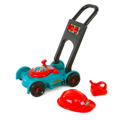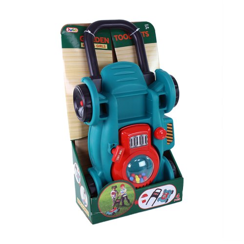 Detská záhradná kosačka vo farebnom plastovom prevedení je báječný pomocník pre malých záhradníkov. Kosačka pri povytiahnutí šnúrky vydáva zvuk. Súčasťou je helma na hlavu a kanister.