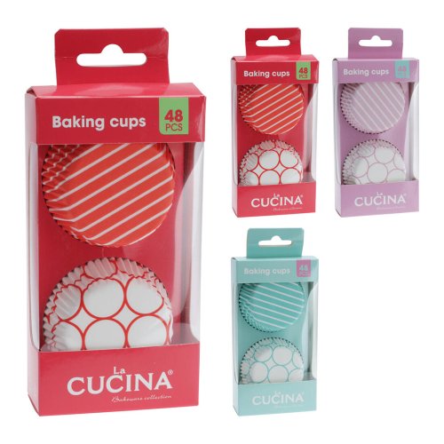 materiál: papier na pečenie mix farieb a dekorov: ružová, mint, červená balenie: 48 ks