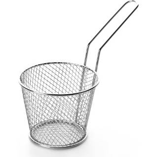 Mini okrúhly fritovací košíček z nerezu na originálne servírovanie vyprážaných dobrôt. .
