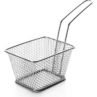 Mini hranatý fritovací košíček z nerezu na originálne servírovanie vyprážaných dobrôt. .