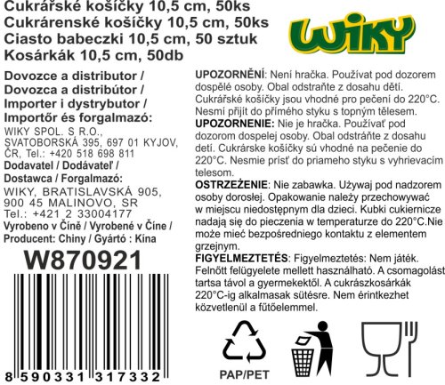 Košíčky cukrárske farebné 10,5 cm (pr. 4,5 cm, v. 3cm) - 50ks