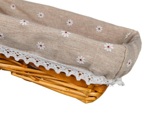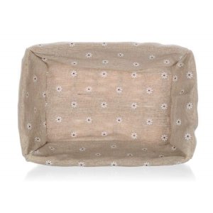 Prútený košík DAISY je vhodný iba na dekoratívne účely. Dodávaný v hnedej farbe okrúhleho tvaru, vo vnútri bavlnená látka dekorom margaréty a krajkovým lemom.