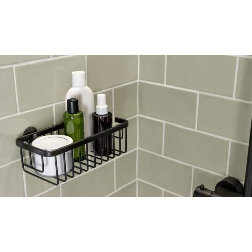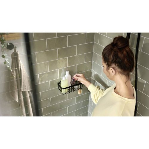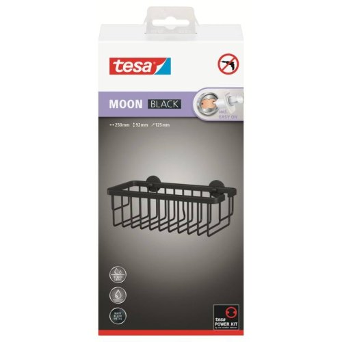 tesa® Moon Čierny sprchový košík technológie tesa® Power.Kit - univerzálne montážne riešenie pomocou lepidla drží na glazovaných dlaždiciach, kove, prírodnom kameni, mramore, betóne, dreve, skle a mnohých typoch …