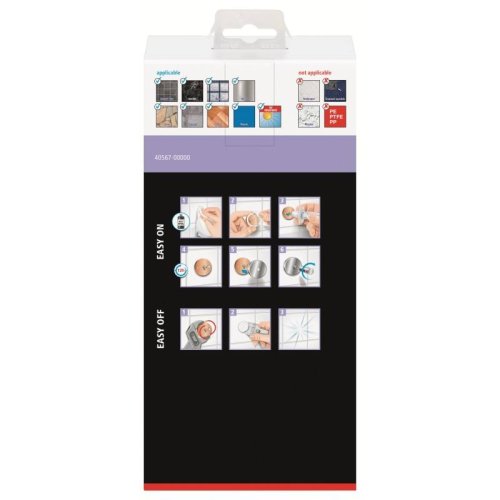 • drží na glazovaných dlaždiciach, kove, prírodnom kameni, mramore, betóne, dreve, skle a mnohých typoch plastov