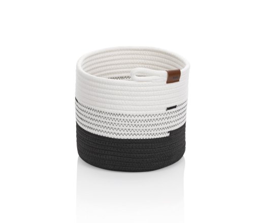 Udržiavať poriadok a upratovať je zábava: čierno/biely úložný kôš zo zmesových vlákien - zo série Hedda od kela. Všestranný a robustný kôš s vrkočovým vzhľadom má rozmery: 23 cm a výška 20 cm Zmes bavlna/polyester 23 cm, v. 20 cm