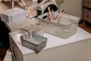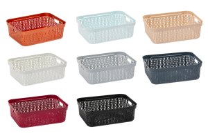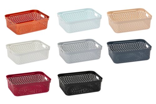 Košík MORSETTA 39,3 x 30 x 13 cm, PH mix barev. rozměry: 39,34 x 29,94 x 13,1 cm materiál: plast mix barev: světle modrá, bílá kouřová, měděná, tmavě šedá, světle šedá, vínová, černá, béžová Plastový …