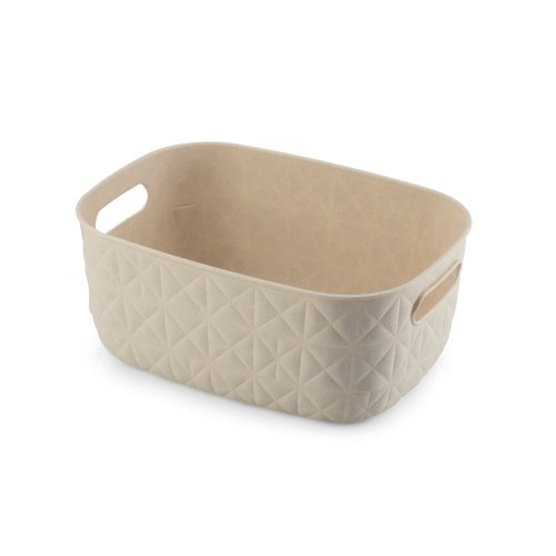 Malý úložný košík je funkčným doplnkom, ktorý dodá každej miestnosti štýlový akcent. Je vyrobený z materiálov, ktoré zo 100% pochádzajú z recyklácie, čo podporuje ekologický prístup ku každodenným domácim prácam. Vďaka kompaktným rozmerom je ideálny na ukladanie malých predmetov a udržuje váš domov čistý a organizovaný. Rozmery 26.5 x 19.5 x 11 cm. EAN 3253924848402