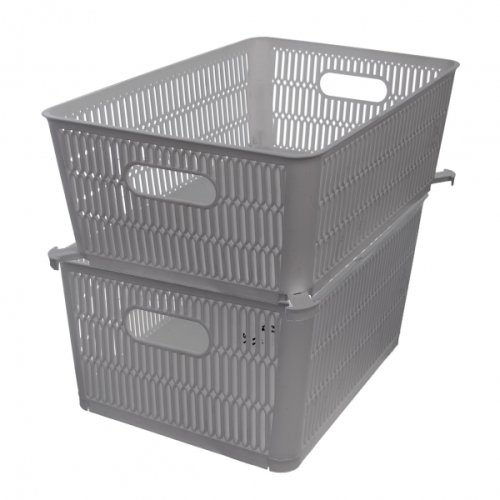 Košík využijete v kuchyni na uloženie potravín (zemiaky, cibuľa, ovocie), v špajze, všade v domácnosti, v dielni, v kúpeľni na uloženie drobností... Košíky sú stohovateľné, na dne košíka sú v každom rohu vysúvacie klapky, ktoré umožňujú košíky skladať na seba. Farba šedá. Rozmery 28.5 x 23 x 12 cm. EAN 8592381176914