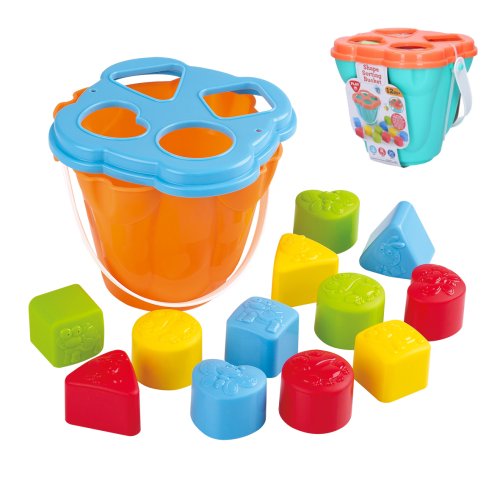 Farebný kýblik s piatimi tvarmi na viečku, ktorými môžeš vkladať 15 farebných kociek. Zábavná hra pre najmenších, ktorá rozvíja jemnú motoriku a spoznávanie farieb a tvarov.