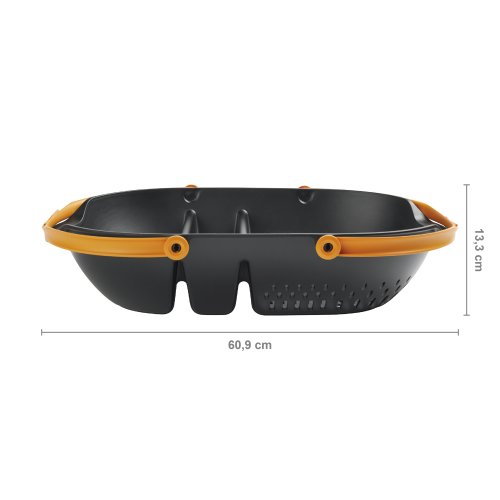 Košík na zber je ideálny na zber, prepravu a čistenie zberu a potravinárskych záhradníckych nástrojov. Cedníková strana má odtokové otvory na umývanie práve zozbieraných produktov, zatiaľ čo uzavretú stranu je možné použiť na namáčanie alebo prepravu čistých produktov alebo nástrojov. Košík je vyrobený z odolného plastu.