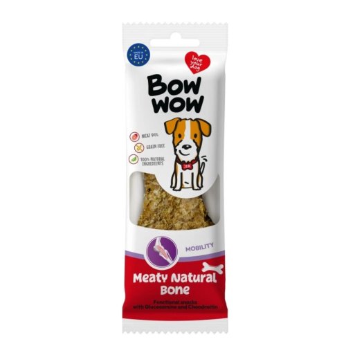 Doprajte svojmu psovi funkčnú maškrtu, ktorá podporuje zdravý pohyb a vitalitu. Bow Wow Naturálna masová kosť Mobility je prémiová pochúťka s vysokým obsahom mäsa a kolagénu, obohatená o látky dôležité pre správnu funkciu kĺbov. Vďaka svojej chuti a kvalitnému zloženiu si ju obľúbia aj nároční psí labužníci.