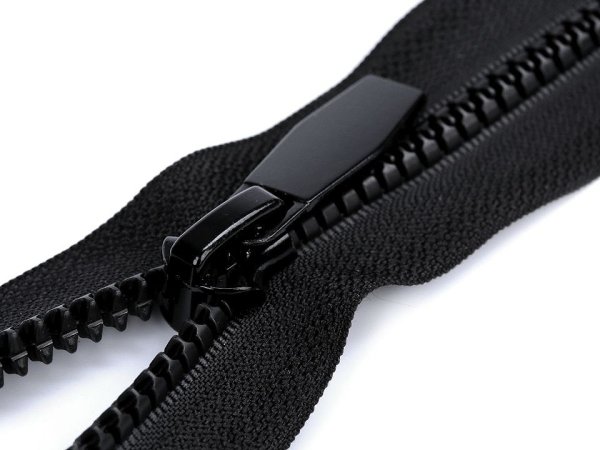 Kostený zips No 5 dĺžka 70 cm okrúhle zúbky, s ozdobným jazdcom - čierna