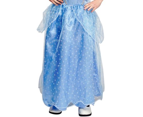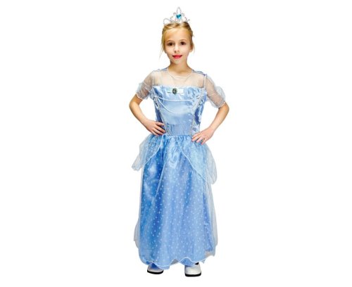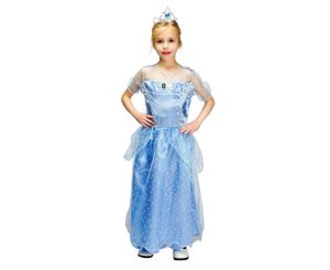Kostým Ľadová princezná vo veľkosti 130/140 cm je navrhnutý tak, aby deťom umožnil premeniť sa na rozprávkovú postavu ľadovej princeznej. Tento kostým tvorí dlhé šaty v jemnej svetlo modrej farbe, ktoré evokujú zimnú atmosféru a ľadový ligot. Šaty sú vyrobené z lesklého materiálu s vrchnou vrstvou ozdobenou drobnými hviezdičkami a mesiačikmi, čo dodáva celému kostýmu kúzelný a iskrivý vzhľad.