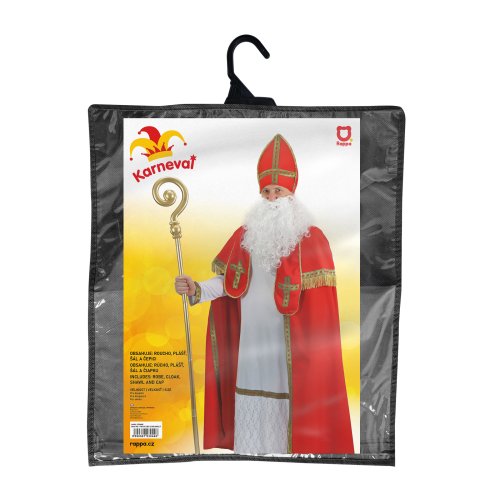 Exkluzívny karnevalový kostým Mikuláša pre dospelých. Kostým obsahuje mikulášsku čiapku, dlhé biele rúcho, červený plášť s golierom a šerpu s krížom! Dĺžka bieleho rúcha od ramien dole je cca 140 cm.