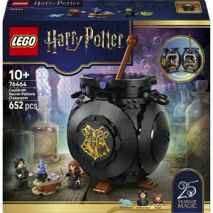 Darujte deťom kúzelnú stavebnicu LEGO® Harry Potter™ (76464) na hranie aj vystavenie – kúzelný kotlík s tajnou učebňou elixírov vo vnútri. Posunutím miešadla odhalíte prepracovanú učebňu s odnímateľnými lavicami, fľaštičkami s lektvarmi a prísadami z kociek LEGO. Zahrajte si na vlastnú hodinu lektvarov v Rokforte s minifigúrkami profesora Snapea a Hermiony Grangerovej. Nájdite Hermioninho patróna v podobe vydry, ktorý je súčasťou kolekcie patrónov k 25. výročiu radu LEGO Harry Potter (stavebnice sa predávajú samostatne), a 1 zo 14 zberateľských bradavických portrétov Bublajúci kotlík z kociek sa bude skvele vynímať na výstavke v izbe a poslúži tiež. Darujte túto univerzálnu stavebnicu ako kreatívny darček dievčatám, chalanom a fanúšikom Harryho Pottera od 10 rokov. Užite si stavanie s oporou vďaka aplikácii LEGO Builder – približujte a otáčajte model v 3D a sledujte postup pomocou zrozumiteľného digitálneho návodu. Stavebnica obsahuje 652 dielikov.