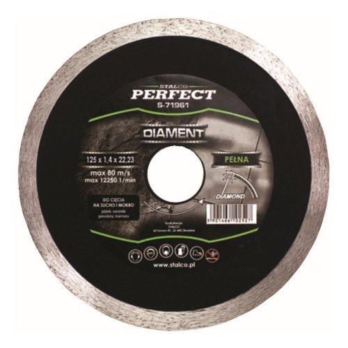 Celoobvodový diamantový kotúč je určený na mokré a suché rezanie dlažby a obkladov, betónu, muriva, tehál, mramoru, žuly, kameňa, skla a keramiky.