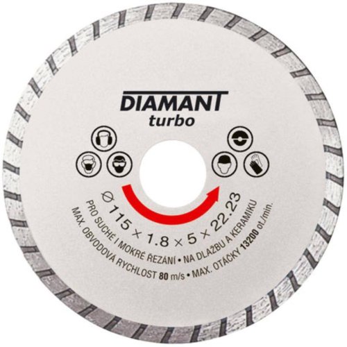diamantový kotúč DIAMANT turbo vysoko efektívne a rýchle rezanie vďaka špeciálnej konštrukcii pevne uchytených diamantových segmentov k nosnému disku kotúča vysoký obsah diamantového prachu priemer otvoru: …