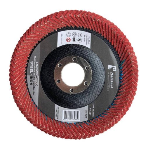 • brúsny kotúč so špičkovým samoostriacim keramickým brusivom, kde lamely sú na všetkých pracovných plochách (spodné, čelné a horné) kotúče a tvarovo sú prispôsobené na brúsenie štandardne i ťažko dostupných zvarových plôch akýchkoľvek zvarkov ako aj všetkých typov obrobiteľných materiálov, bežnej ocele a ocele vyšší , legovaná oceľ, nerezovaných ocelí, tvrdých materiálov, zváracích materiálov atď.