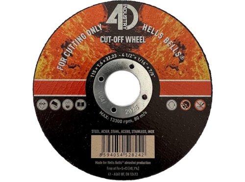 Rezné kotúče Hells Bells s bakelitovým spojivom sú vyrobené z prémiového korundového zrna, ktoré je zárukou rýchleho rezu a dlhej životnosti. Neobsahujú stopy železa, chlóru a síry. Sú určené na rezanie uhlíkových ocelí, konštrukčných ocelí a nerezových ocelí.