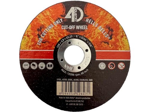 Rezné kotúče Hells Bells s bakelitovým spojivom sú vyrobené z prémiového korundového zrna, ktoré je zárukou rýchleho rezu a dlhej životnosti. Neobsahujú stopy železa, chlóru a síry. Sú určené na rezanie uhlíkových ocelí, konštrukčných ocelí a nerezových ocelí.