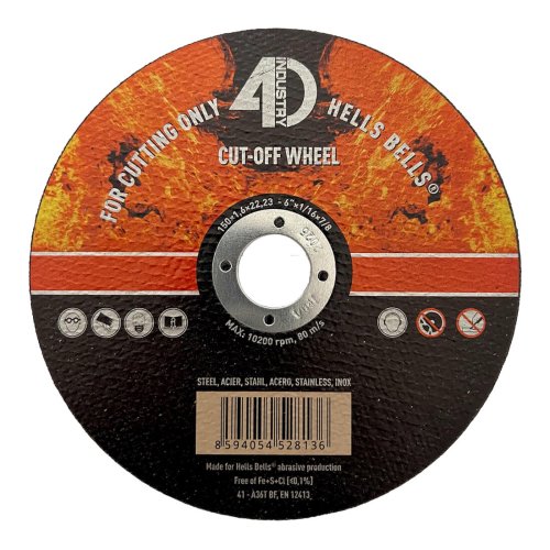 Rezné kotúče Hells Bells s bakelitovým spojivom sú vyrobené z prémiového korundového zrna, ktoré je zárukou rýchleho rezu a dlhej životnosti. Neobsahujú stopy železa, chlóru a síry. Sú určené na rezanie uhlíkových ocelí, konštrukčných ocelí a nerezových ocelí.