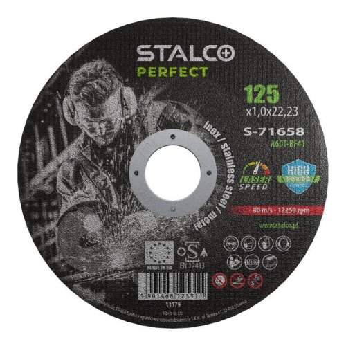• Plochý rezací kotúč na kov je mimoriadne univerzálny produkt určený na prácu s kovom. Je to náhradné príslušenstvo pre elektrické náradie, najmä uhlové brúsky a píly. Bude nenahraditeľný pri rekonštrukciách, v dielňach a pri stavebných prácach. Plochý rezací kotúč na kov z radu STALCO PERFECT sa vyznačuje dobrou odolnosťou proti mechanickému poškodeniu. Počas prevádzky vydáva nízku hladinu hluku a vibrácií, čo prispieva ku komfortu obsluhy. Dokonale zvolená jemná zrnitosť zaisťuje estetiku rezaného povrchu. Kotúče sú k dispozícii v niekoľkých štandardných veľkostiach a hrúbkach.