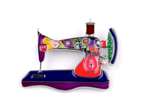 Smaltovaná brošňa šijacieho stroja bude skvelým darčekom nielen pre krajčírku. Ocenia ju všetky kreatívne ženy, ktoré milujú farby. Je ozdobená brúseným kamienkom. Z rubu má brošňový špendlík. Môžete ju nosiť nielen na odevoch, hodí sa aj na ozdobenie klobúkov, tašky či zopnutie šatky. Brošňa je na plastovej karte, ktorú je možné zavesiť na predajné stojany.