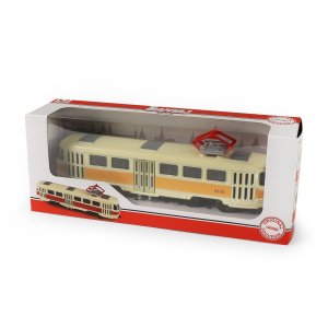Originálna kovová retro električka T3 s mierkou 1:87, ktorá jazdí na spätný chod. Dĺžka električky je cca 16 cm a prostredné dvere je možné manuálne otvoriť. Jedná sa o najpočetnejšie vyrábané električkové vozidlo na svete. Takže ty, ako správny fanúšik týchto zberateľských kúskov ju rozhodne musíš mať!