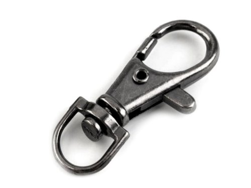 Kovovú otočnú karabínku využijete na výrobu kľúčeniek a pripevnenie popruhov na menšie tašky alebo kabelky. Karabínka je zložená z nemagnetického kovu, magnetické je iba koliesko uprostred. Rozmery viď foto. [Rozmery č. 4 sú 13 x 37 mm.]