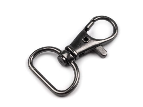 Kovovú otočnú karabínku využijete predovšetkým na výrobu kľúčeniek a popruhov na menšie tašky alebo kabelky. Karabínka je zložená z nemagnetického kovu, magnetické je iba koliesko uprostred. Rozmery viď foto. [Karabina je vhodná na popruh o šírke 18 mm.]