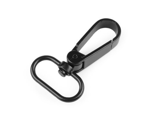 Kovovú otočnú karabínu môžete použiť na upevnenie popruhov k taškám a kabelkám. Je vhodná aj na výrobu vodítok pre psov. [Netradične ju využijete aj ako ozdobné zapínanie na ramienka šiat.] Karabína je vyrobená z nemagnetického kovu, magnetická je iba skrutka. [Karabina je vhodná na popruh o šírke 20 mm.]