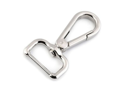 Otočnú kovovú karabínu využijete nielen na upevnenie popruhov k taškám či kabelkám, ale aj na výrobu vodítok pre psov. Karabína je vhodná na popruh o šírke 24 - 25 mm.