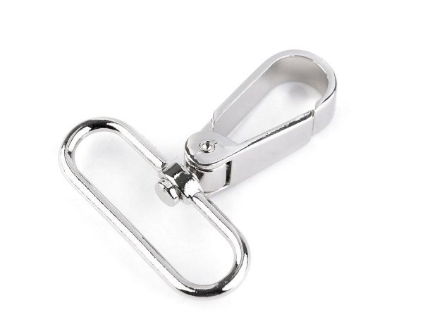 Kovová otočná karabína je vhodná na upevnenie popruhov k športovým taškám či kabelkám. Môžete ju použiť aj na výrobu vodítok pre väčšie psy. Karabína je z nemagnetického kovu, magnetická je iba skrutka. Karabína je vhodná na popruh o šírke 30 mm.