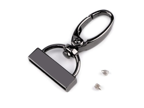 Kovová otočná karabína je s koncovkou, ktorú pomocou drobných skrutiek pripevníte k popruhom či remienkom. Skvele sa hodí na výrobu tašiek, kabeliek alebo kľúčeniek.