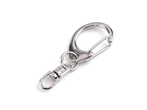 Malá kovová karabínka je pripevnená k otočnému obrtlíku. Využijete ju na pripevnenie rôznych príveskov na tašky, kabelky, batohy, na výrobu kľúčeniek a pod.