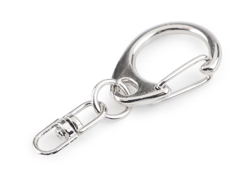 Pevná kovová karabína na otočnom čape. Šírka karabíny je 18 mm, takže je vhodná na drobnejšie prívesky a subtílnejšie kabelky. Dĺžka 40 mm, šírka 18 mm.