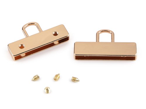 Koncovka na popruhy má vysoký lesk. Prilepíte do nej koniec popruhu či iného materiálu (s hrúbkou do 3 mm), ktorý následne uchytíte priloženými skrutkami. Koncovky sa hodia na výrobu uší ku kabelkám, listovým kabelkám a taškám. Môžete ich tiež využiť na ozdobné strapce, dizajnové opasky a pod. Rozmery skrutky sú 2,7 x 4,2 mm.