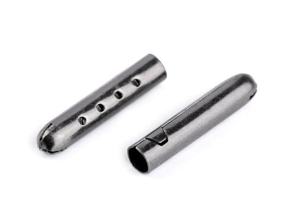Kovová koncovka je vhodná ako zakončenie šnúrok s priemerom 4 mm. šnúry. Na koniec stačí pozdĺžne hrany koncovky stlačiť späť do pôvodného tvaru, aby bola pekne guľatá.]