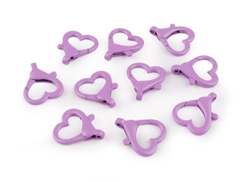 Kovová lakovaná karabína srdce prievlak 15 mm - fialová lila (10 ks)