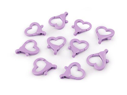 Kovová lakovaná karabína srdce prievlak 15 mm - fialová sv. (10 ks)
