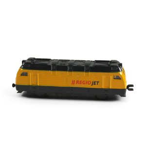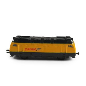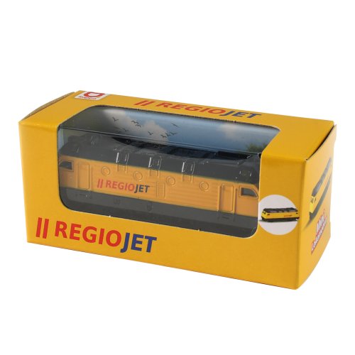 Originálna 9 cm dlhá lokomotíva regionálnej spoločnosti RegioJet, by nemala chýbať v izbičke žiadnemu fanúšikovi vláčikov! Tento úžasný kovový model lokomotívy je ideálny ako darček alebo ako zberateľský kúsok! Pri kúpe viacerých kusov ich možno jednoducho zapojiť za sebou. Lokomotíva jazdí na voľný chod. Rozchod koľajnice je 1,2 cm.