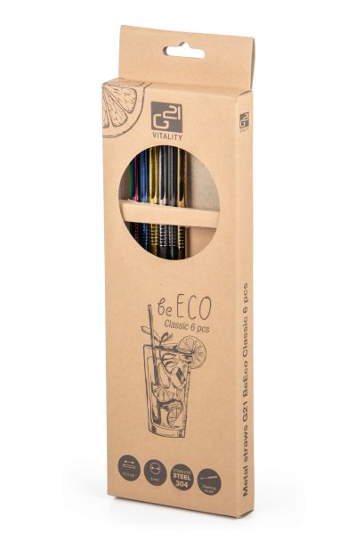 Zaobstarajte si elegantné, odolné, štýlové a predovšetkým ekologické slamky na pitie z nerezu . V sade nájdete 6 nerezových slamiek G21 BeEco Classic s priemerom 6 mm a dĺžkou 21,5 cm a kefkou na čistenie. V ponuke máme aj slamky zahnuté, pozrieť si ich môžete tu .