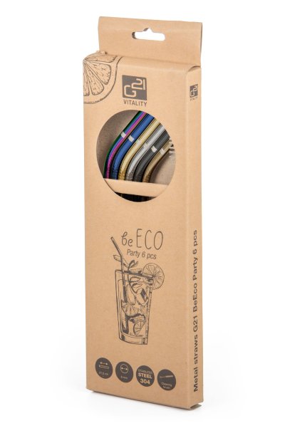 Zaobstarajte si elegantné, odolné, štýlové a predovšetkým ekologické slamky na pitie z nerezu . V sade nájdete 6 zahnutých nerezových slamiek G21 BeEco Party s priemerom 6 mm a dĺžkou 21,5 cm a kefkou na čistenie. V ponuke máme aj slamky rovné, prezrieť si ich môžete tu .