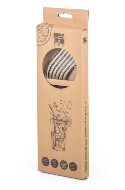 Zaobstarajte si elegantné, odolné, štýlové a predovšetkým ekologické slamky na pitie z nerezu . V sade nájdete 6 zahnutých nerezových slamiek G21 BeEco Party s priemerom 6 mm a dĺžkou 21,5 cm a kefkou na čistenie. V ponuke máme aj slamky rovné, prezrieť si ich môžete tu .