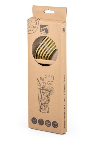 Zaobstarajte si elegantné, odolné, štýlové a predovšetkým ekologické slamky na pitie z nerezu . V sade nájdete 6 zahnutých nerezových slamiek G21 BeEco Party s priemerom 6 mm a dĺžkou 21,5 cm a kefkou na čistenie. V ponuke máme aj slamky rovné, prezrieť si ich môžete tu .