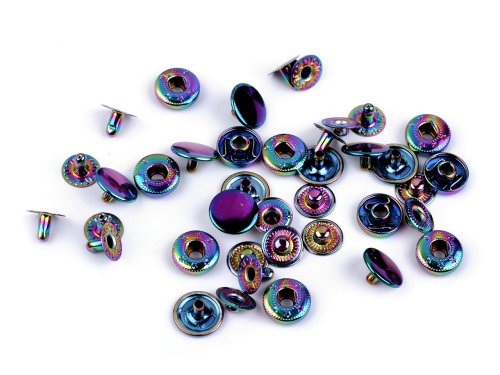 Kovové cvoky sú zaujímavé holografickým povrchom, ktorý hádže dúhové odtiene. Druky využijete na odevy aj doplnky. Sú určené na spájanie stredne silných látok s hrúbkou 0,5 - 1,5 mm. Nitovanie sa vykonáva lisom, ktorý nájdete pod kódom 070241 alebo 790770 a pistónom.