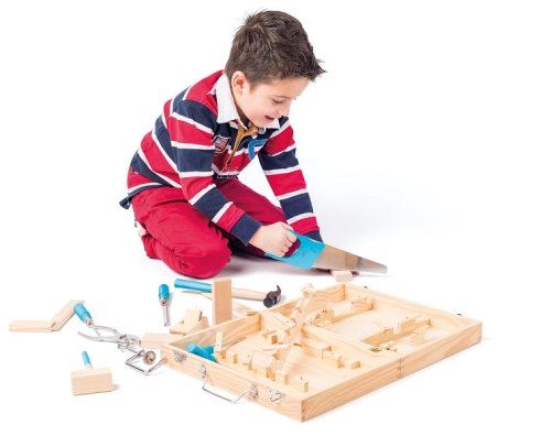 Kovové náradie je reálnou kópiou skutočného náradia pre dospelých. Praktický drevený kufrík s pántami, v ktorom je náradie umiestnené, je opatrený dvoma kovovými prackami a kovovým uhom pre možnosť prenášania. Vnútri kufríka sú inštalované západky a špeciálne otvory, ktoré zaistia jednotlivé kusy náradia tak, aby pri manipulácii nevypadli. Súprava obsahuje 16 ks náradia. Vek: 5+ | Rozmer otvoreného kufríka: 45 x 3,5 x 32 cm