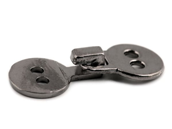 Kovové zapínanie využijete namiesto gombíkov u viest, svetríkov, kardiganov alebo sák. Skladá sa z očka a háčika. Zapínanie môžete bez obáv prať, pretože nehrozí, že zhrdzaví.