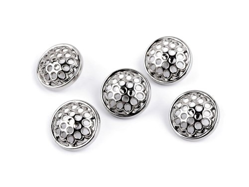 Kovové gombíky so zaujímavým dierovaným dizajnom vyniknú na kabátoch, sakách, košeliach alebo kardiganoch. Majú spodné prišívanie. Veľkosť gombíkov nájdete v tejto tabuľke.